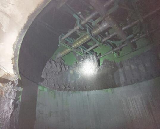 缓冲槽液位、料液槽液位控制要考虑浓缩段固液比的变化,不应出现三者之间液位失衡而波及浓缩段固液比过高或无料可出。同时还要兼顾系统烟气量,入塔烟气温度变化等因素!这方面就要靠在座各位的悟性了!其次缓冲槽、料液槽搅拌器为置顶式搅拌器,置顶式搅拌器在运行时的平衡,由合理的液位形成一定的阻尼来保持搅拌器的运行平衡,如果液位控制低于搅拌器叶片,则会使搅拌器失去平衡导致搅拌器大轴弯曲变形,引发设备事故。液位控制的太低导致搅拌器在失衡状态下运行,维持搅拌器平衡的阻尼被破坏,导致搅拌器的大轴变形。无论是框式搅拌器、还是叶片式搅拌器,它都是以搅拌器轴心做平衡运行。如果搅拌器大轴弯曲变形,导致搅拌器平衡被破坏。出现搅拌器及基座开始出现摆动现象。此时无论液位是否合理,都会在运行中出现摆动。如果液位控制不合理则会加速恶化搅拌器平衡性能。导致搅拌器大轴与减速机等链接紧固螺栓极易脱落,而引发搅拌器故障以及搅拌器叶片与罐壁防腐产生摩擦损坏缓冲槽防腐层。